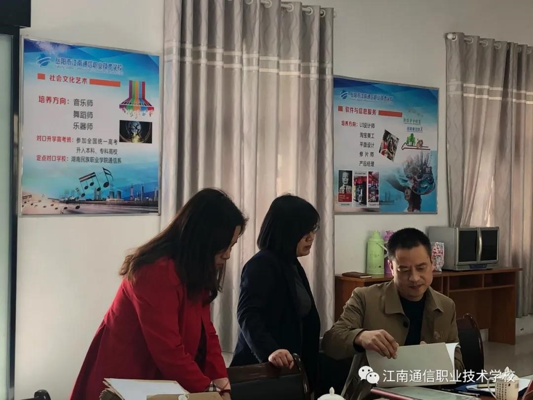 3月22日上午,岳陽市教體局領導李像謙科長一行蒞臨我校進行2021年春季教學視導工作。視導組成員就常規(guī)教育教學工作專業(yè)辦學條件,專業(yè)教學文件,專業(yè)教學團隊、實習與就業(yè)情況、專業(yè)建設實效等六個方面全面進行了檢查視導。 肯定我們工作做的細致、扎實,有實效,專業(yè)有特色,學生有所成。同時交待了下階段要做好的六件事: